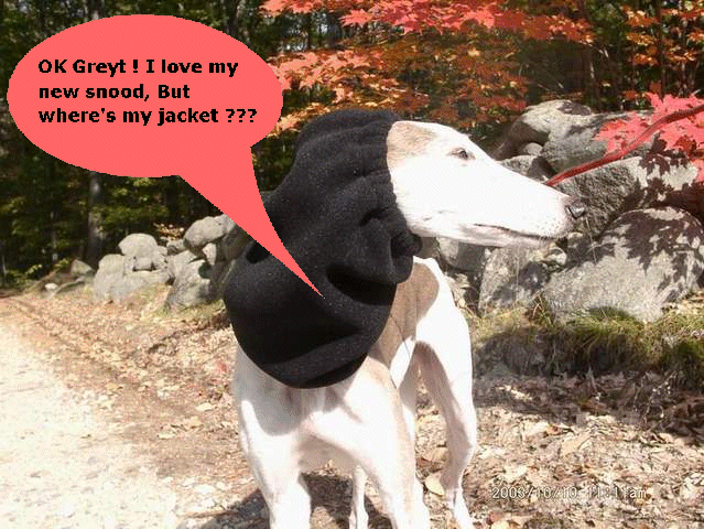Our cuddly snoods keep ears and neck warm on especially cold days. Comfortable elastic keeps the snood in front of the ears, loosely bound at the bottom to allow freedom of movement. Snoods also features an opening for a leash. |